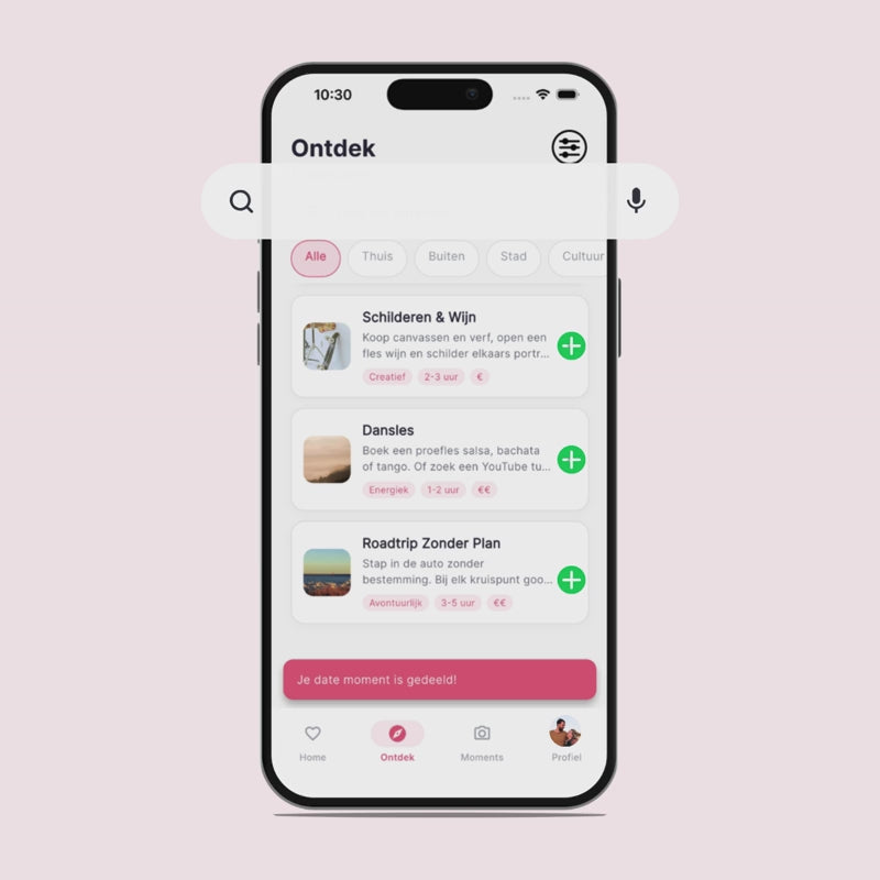 Lovly beschikt over een zoekfunctie om jouw ideale date makkelijk en snel toe te voegen aann jullie date selectie. Zo mis je nooit jouw ideale date